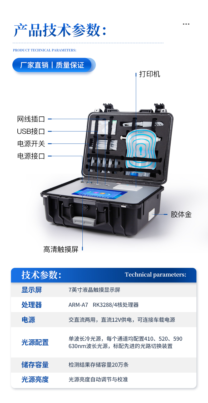 5、一体化便携式快检设备,满足现场及流动检测使用需求,能够在同一软件下实现所有检测项目的检测,并可通过同一窗口直观显示检测结果。